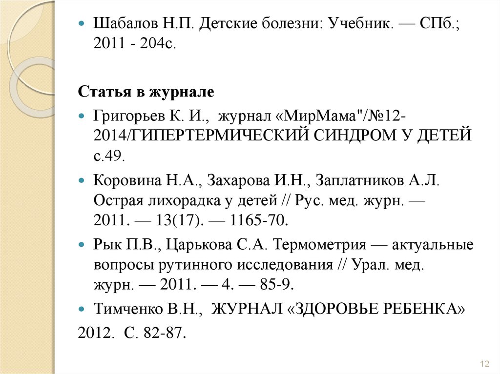 антипиретика в педиатрии // Педиатрия. — 2012. —