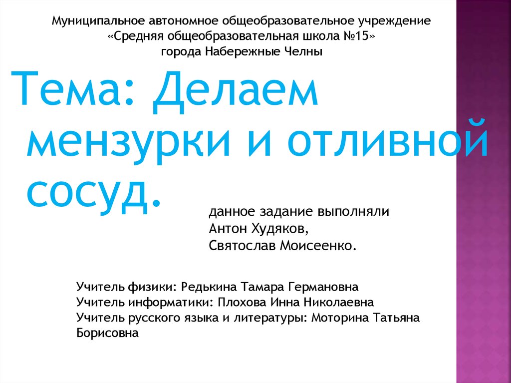 Учитель физики: Редькина Тамара Германовна