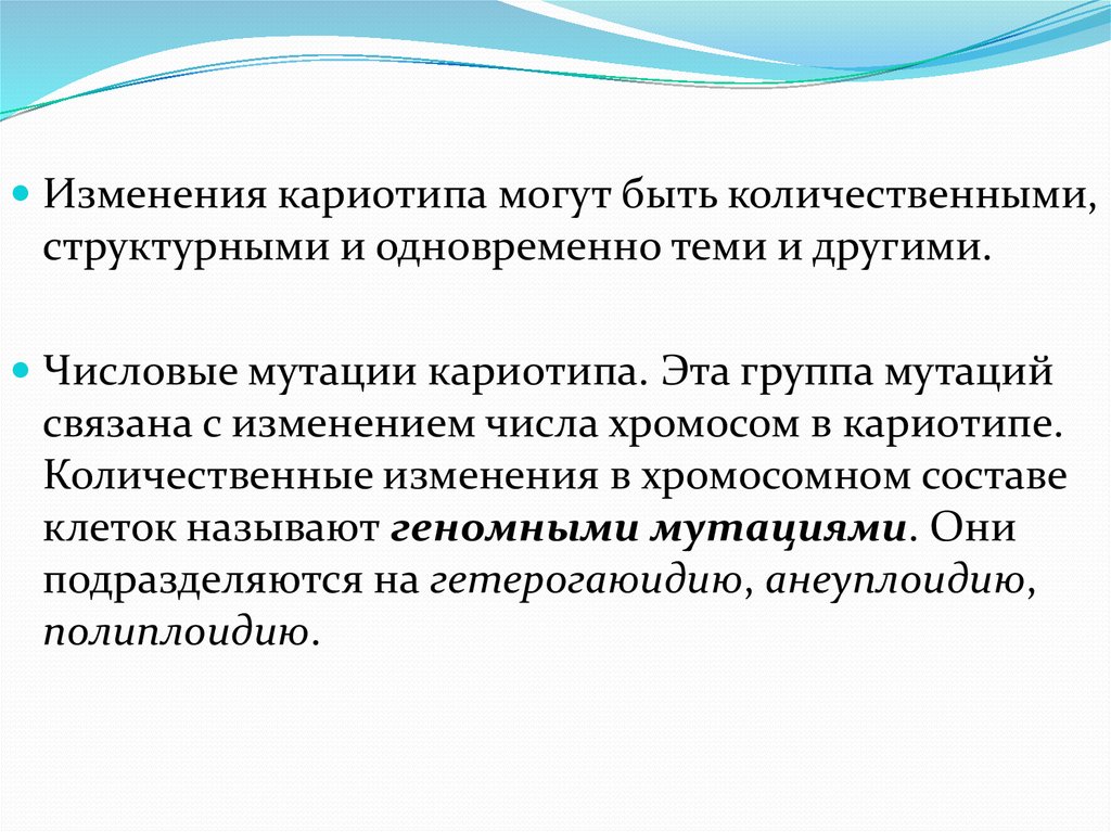 Числовые мутации кариотипа. Эта группа мутаций