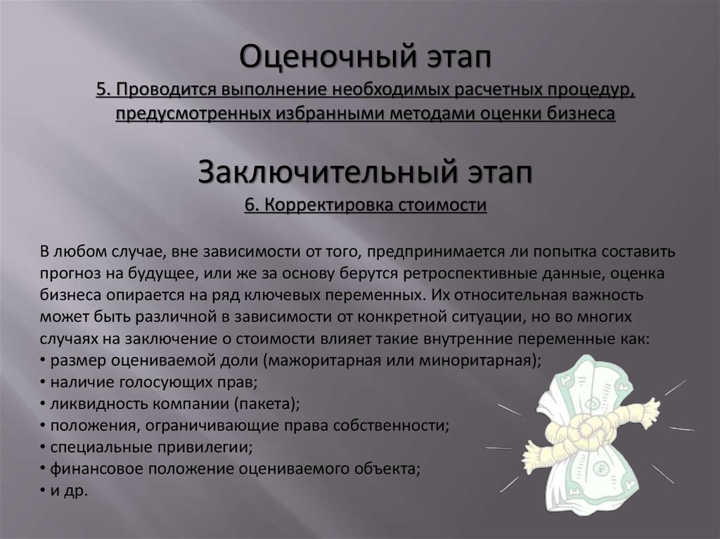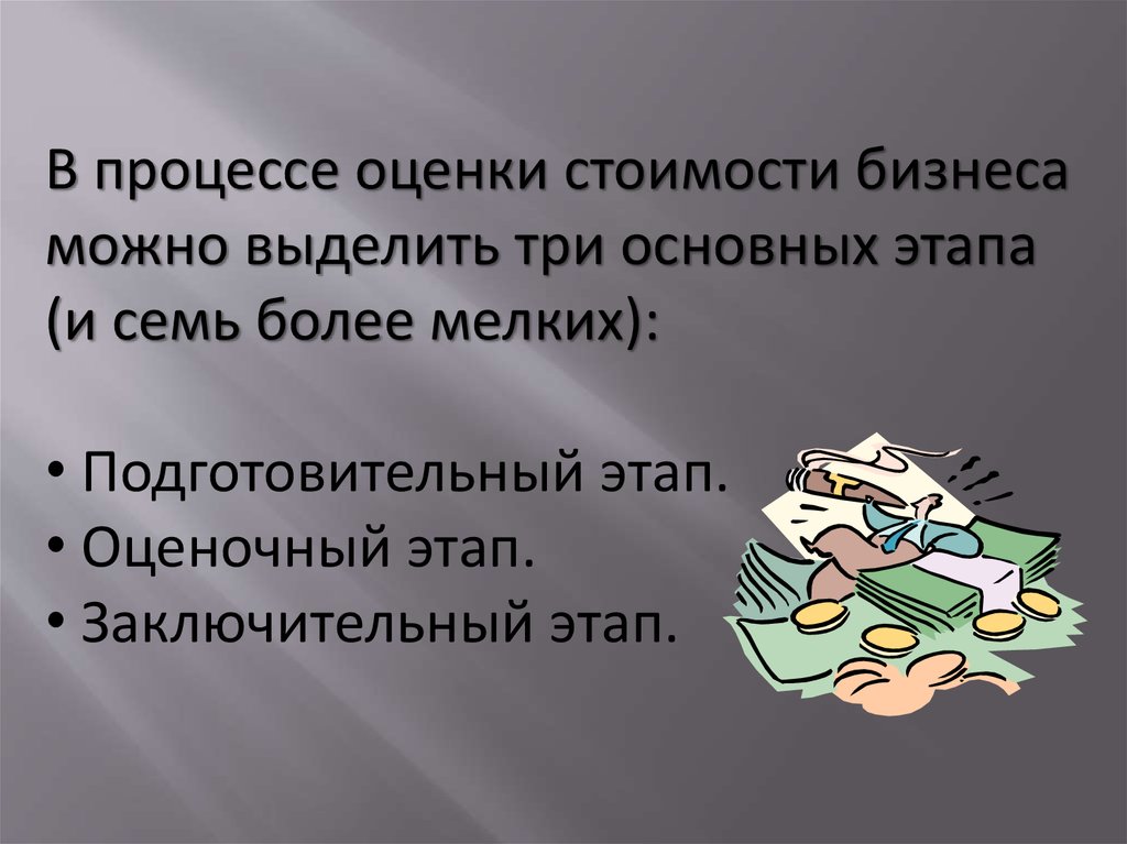 В процессе оценки стоимости бизнесаможно выделить три основных этапа