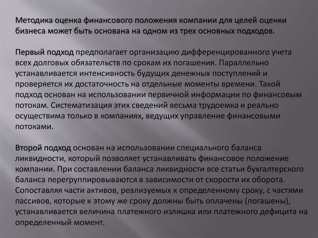 3. Оценка финансового положения компанииВ процессе оценки бизнеса возникает необходимость