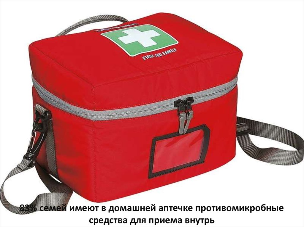 83% семей имеют в домашней аптечке противомикробныесредства для приема внутрь