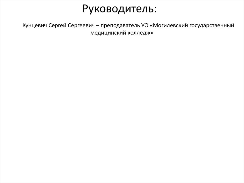 Руководитель:Кунцевич Сергей Сергеевич – преподаватель УО «Могилевский государственный