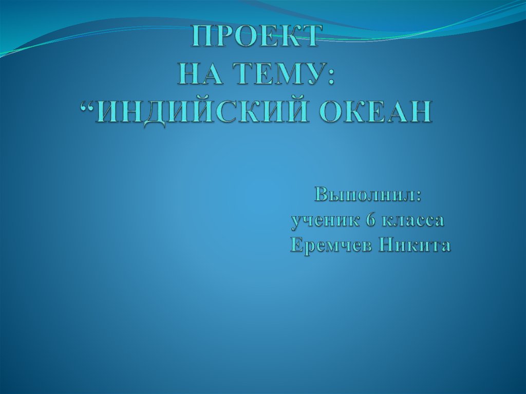 1. ПРОЕКТ НА ТЕМУ: “ИНДИЙСКИЙ ОКЕАН Выполнил: ученик 6 класса Еремчев Никита