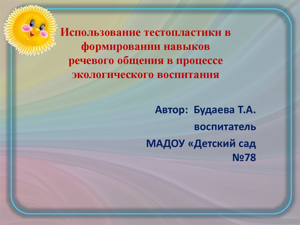Использование тестопластики в формировании навыков речевого общения в процессе экологического воспитания