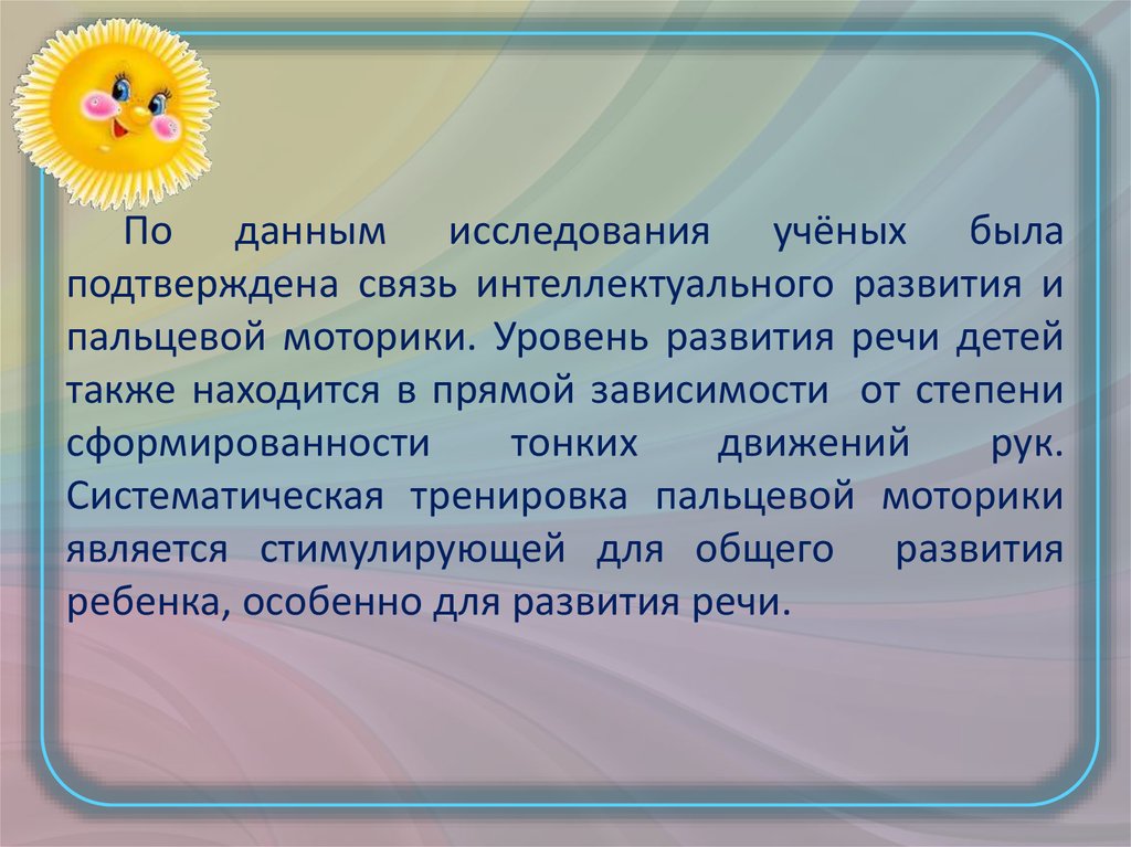 пальцевой моторики. Уровень развития речи детей