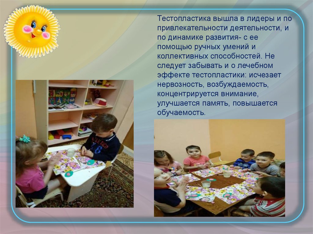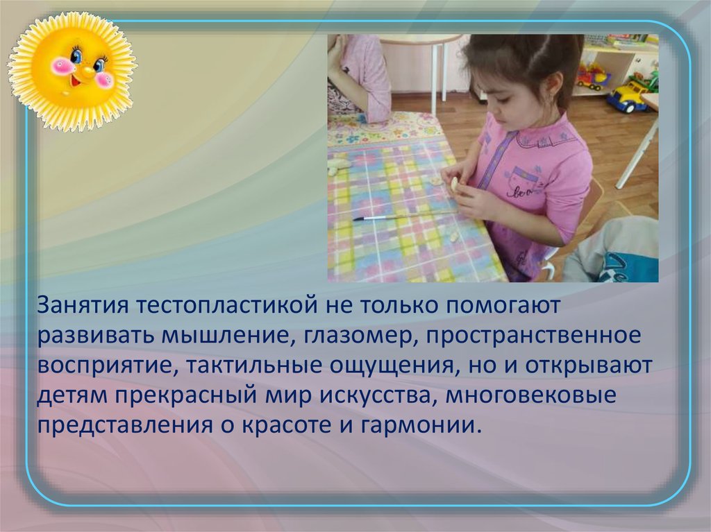 Занятия тестопластикой не только помогаютразвивать мышление, глазомер, пространственное