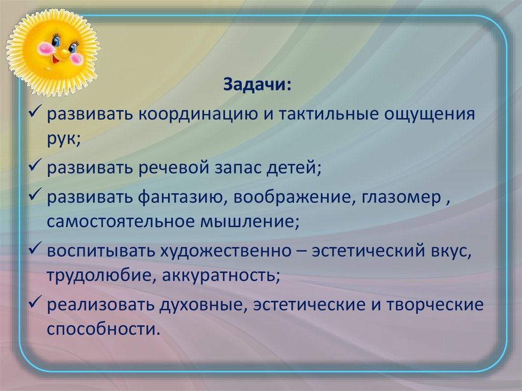 Задачи:развивать координацию и тактильные ощущения