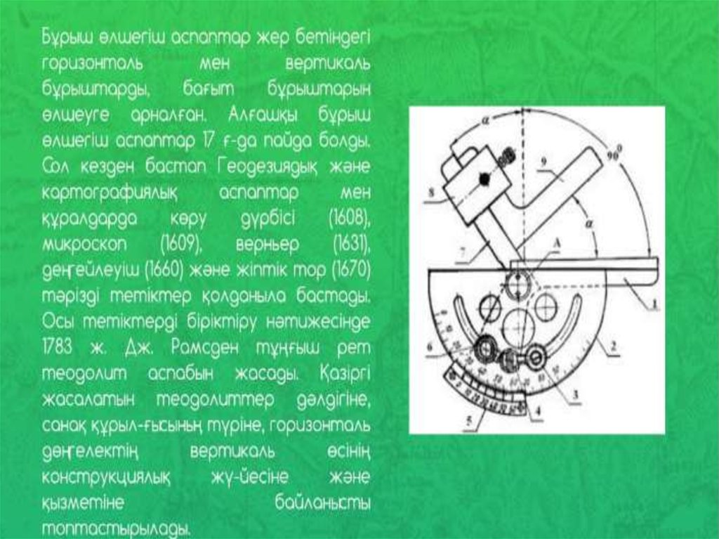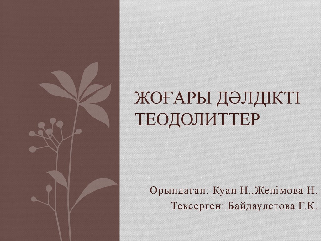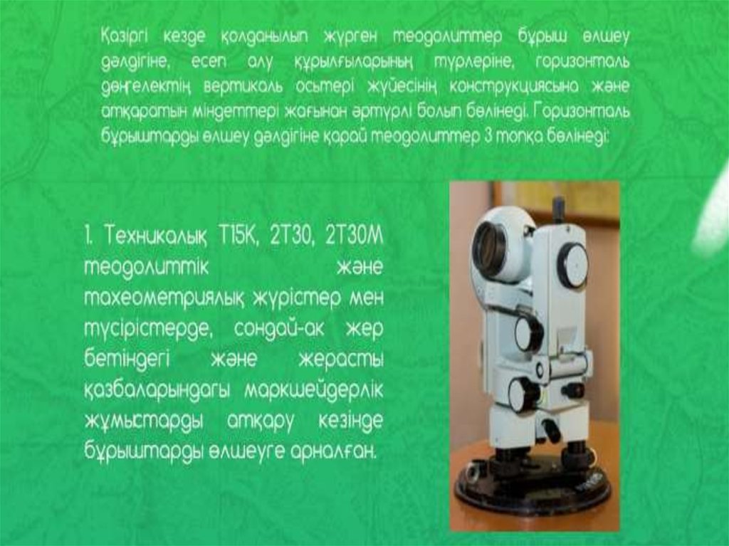• 1. Жоғарғы дәлдікті аспаптар• 2. Жоғарғы дәлдікті теодолиттердің құрылысы мен сипаты