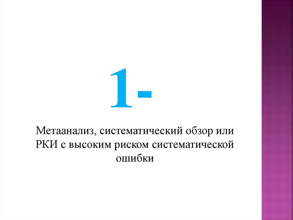 1Метаанализ, систематический обзор илиРКИ с высоким риском систематической
