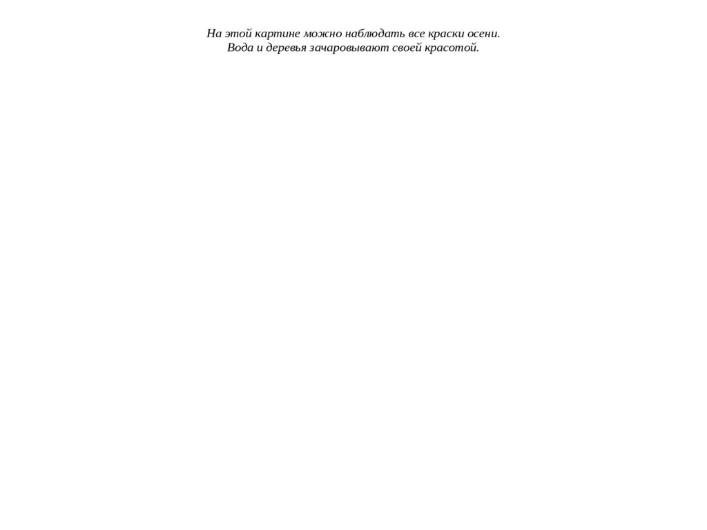 На этой картине можно наблюдать все краски осени.Вода и деревья зачаровывают своей красотой.