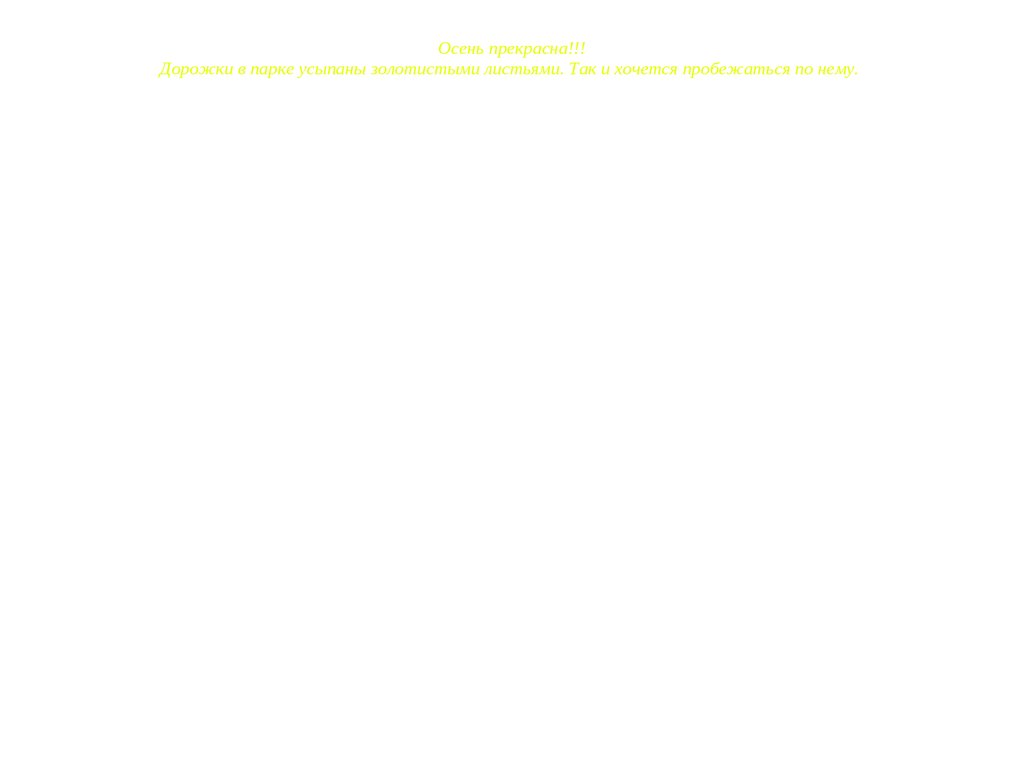 Осень прекрасна!!!Дорожки в парке усыпаны золотистыми листьями. Так и хочется пробежаться по нему.