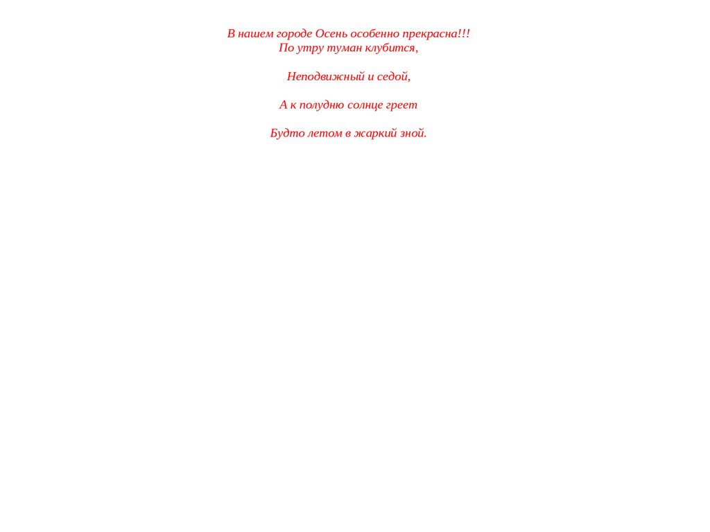 В нашем городе Осень особенно прекрасна!!!По утру туман клубится,