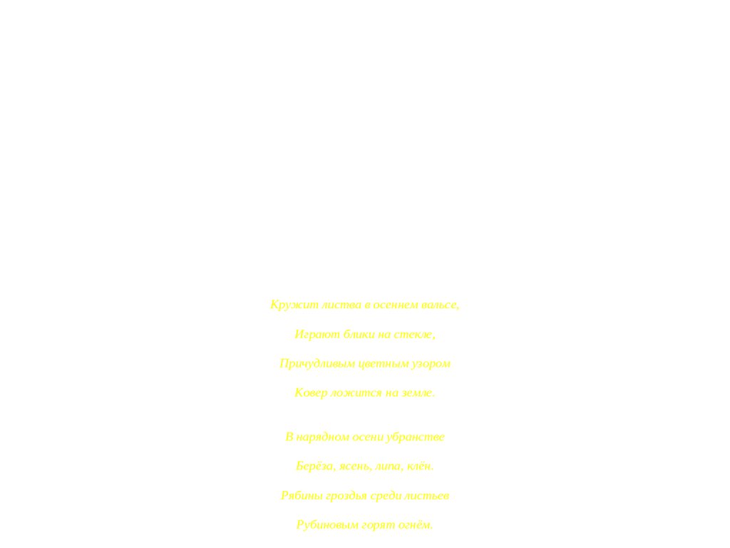 Березы в ярко-желтых сарафанах, у клена свой красный наряд,кустарники
