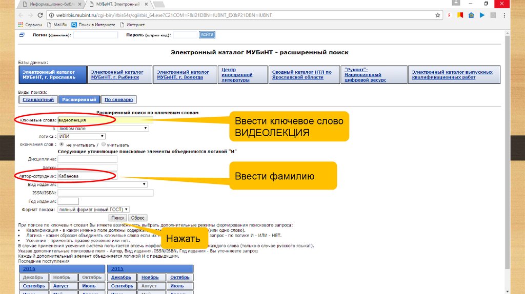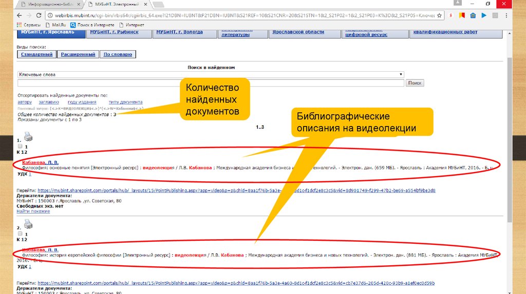 Алгоритм поиска библиографических описаний на видеолекции и конспекты лекций в электронном каталоге