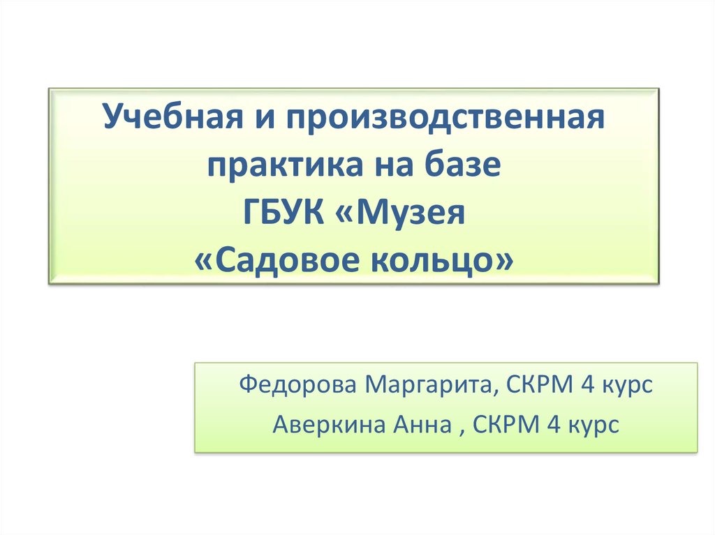 1. Учебная и производственная практика на базе ГБУК «Музея «Садовое кольцо»