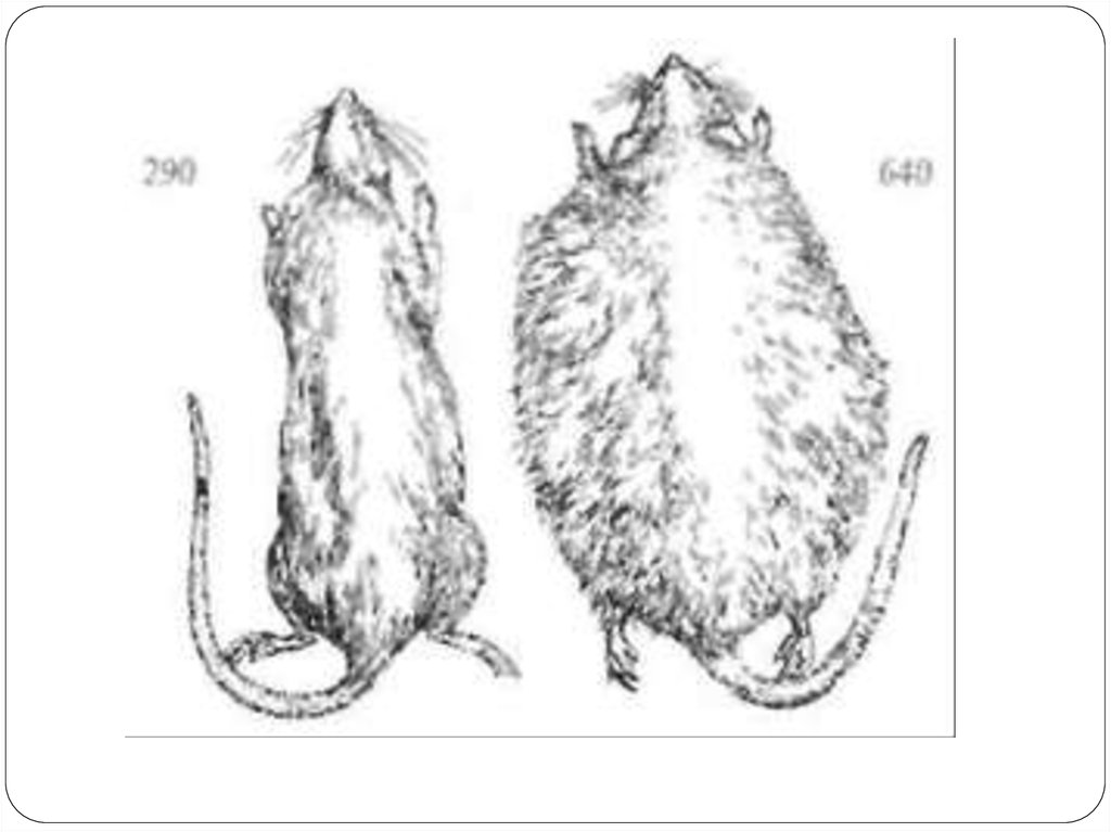 показаны две крысы: одна с нормальной массой тела,
