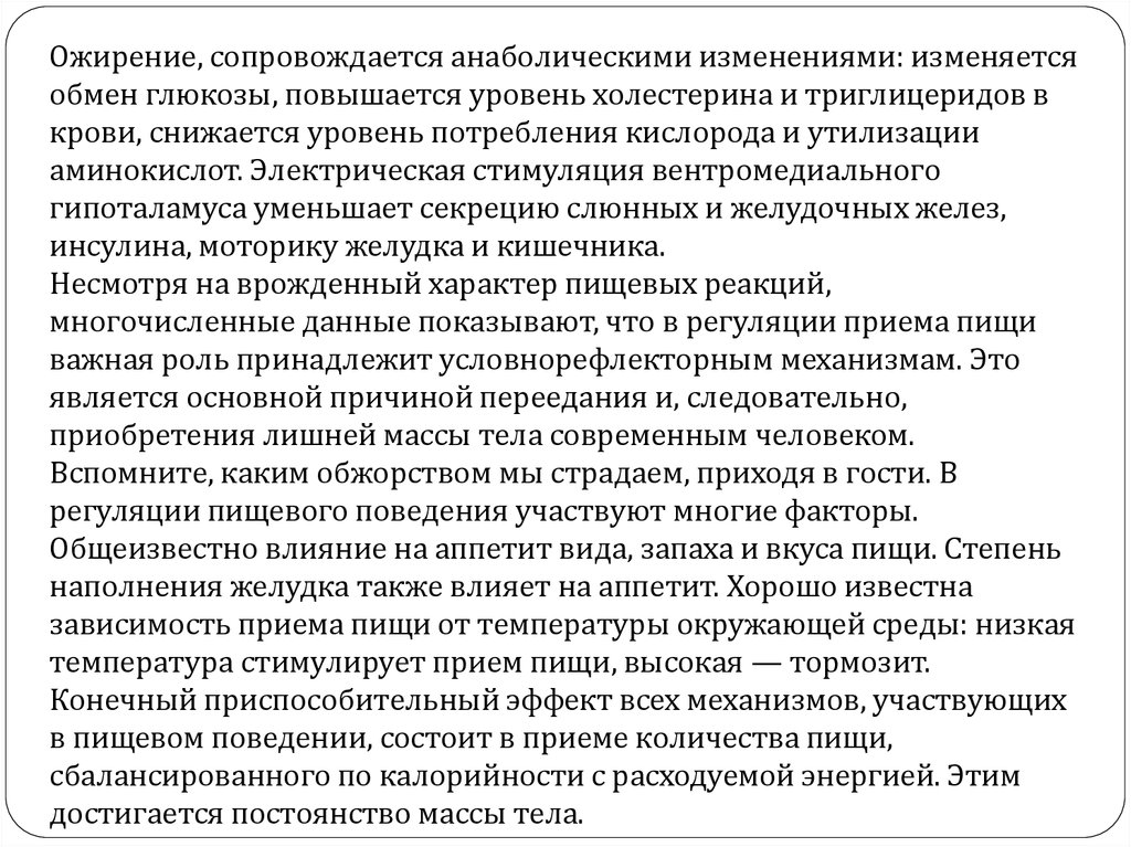 регуляции пищевого поведения участвуют многие факторы.