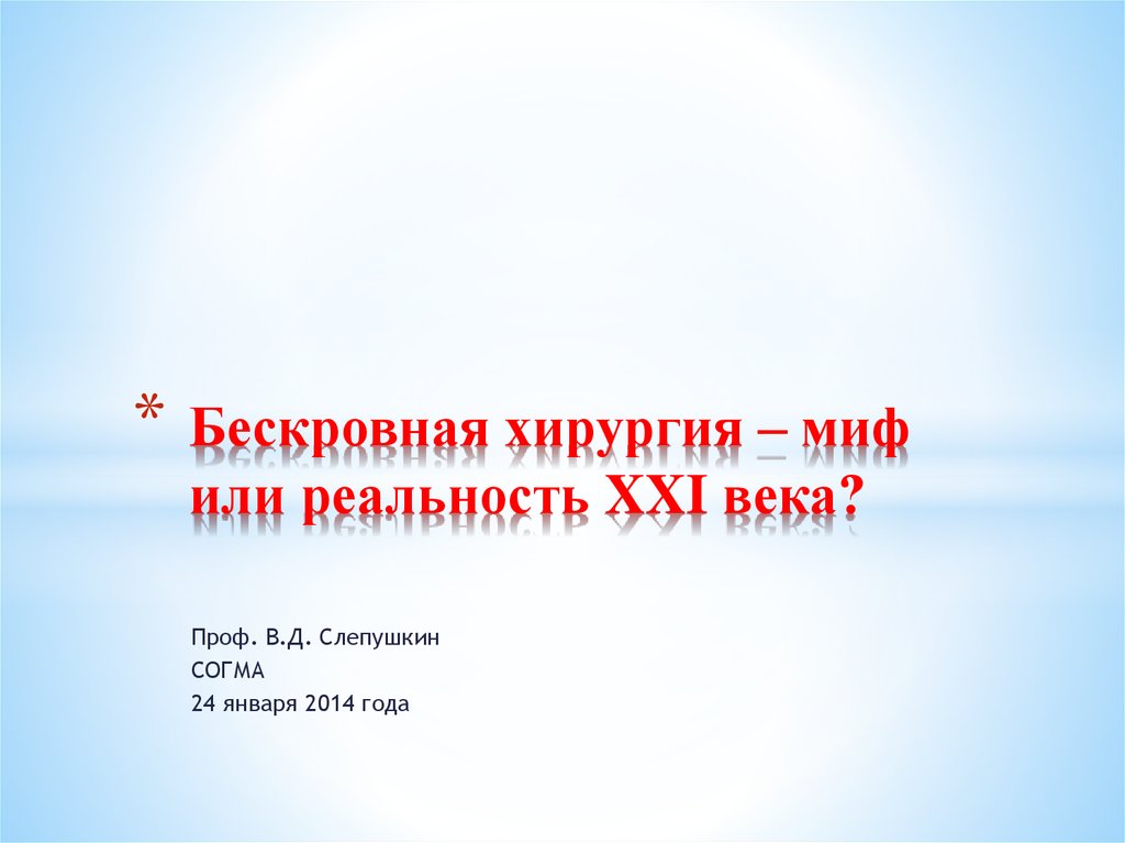 *Бескровная хирургия – миф