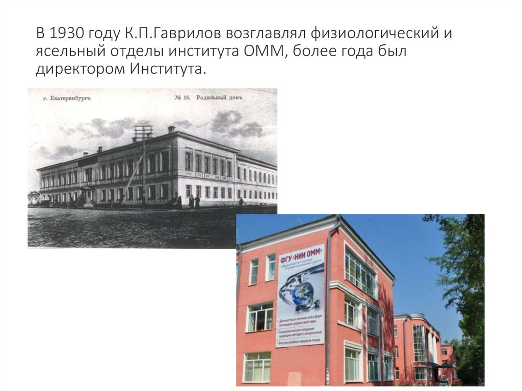 В 1930 году К.П.Гаврилов возглавлял физиологический иясельный отделы института ОММ, более года был