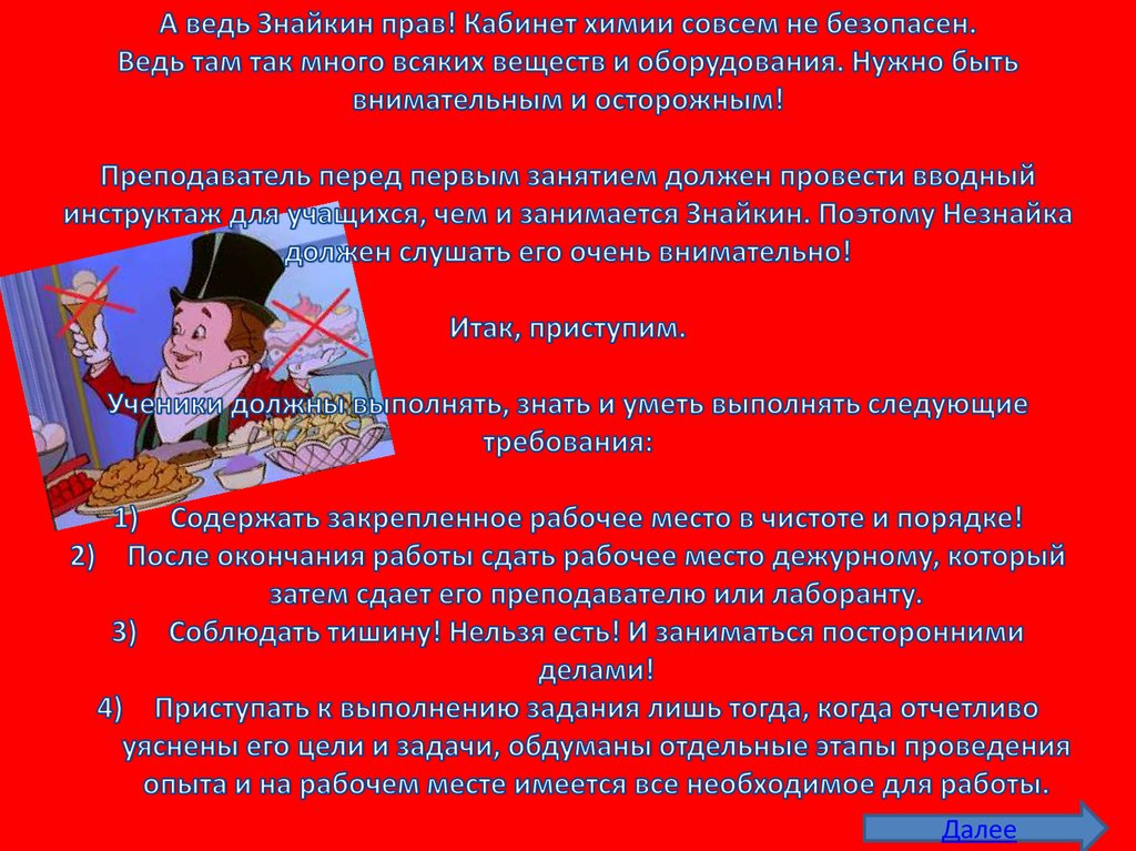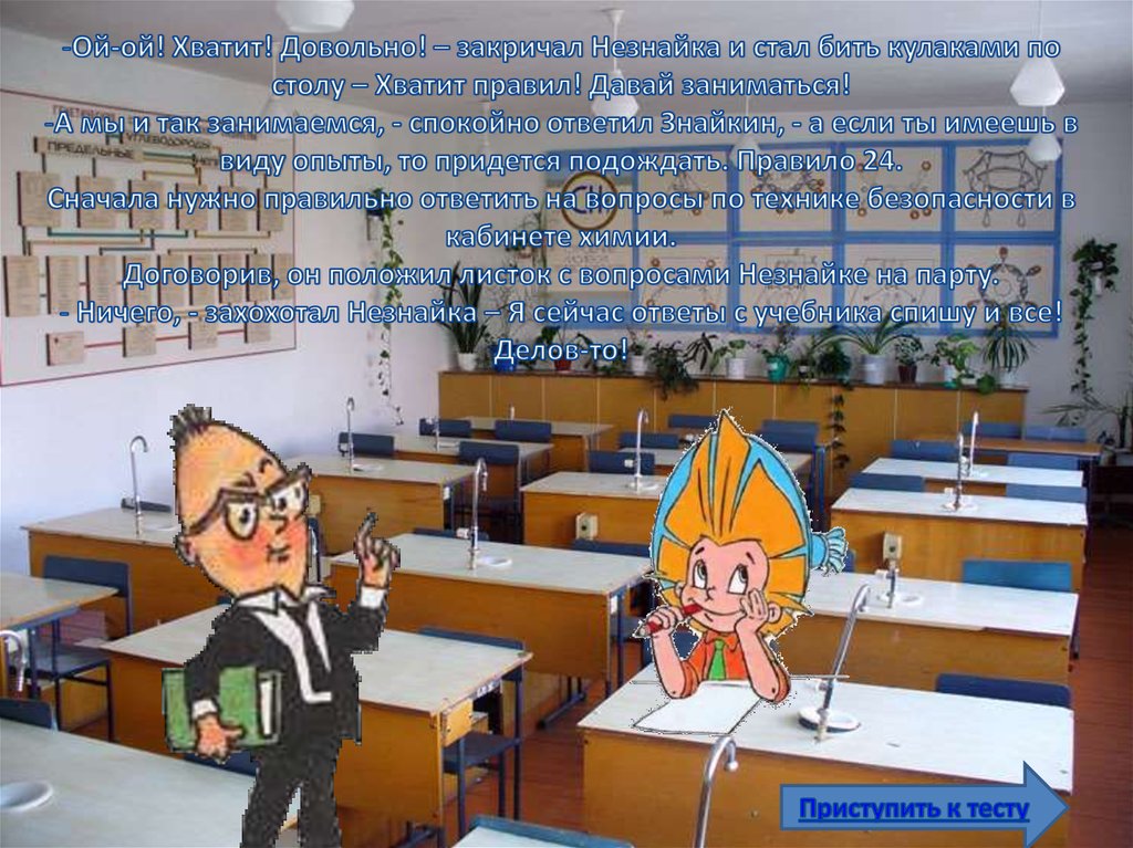 Безопасная химия с Незнайкой. Правила поведения в кабинете химии