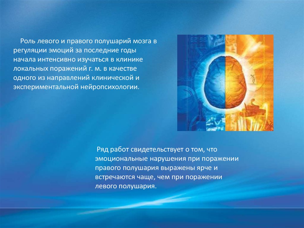 Специфика нарушений эмоций в зависимости от локализации поражения в левом или правом полушариях мозга