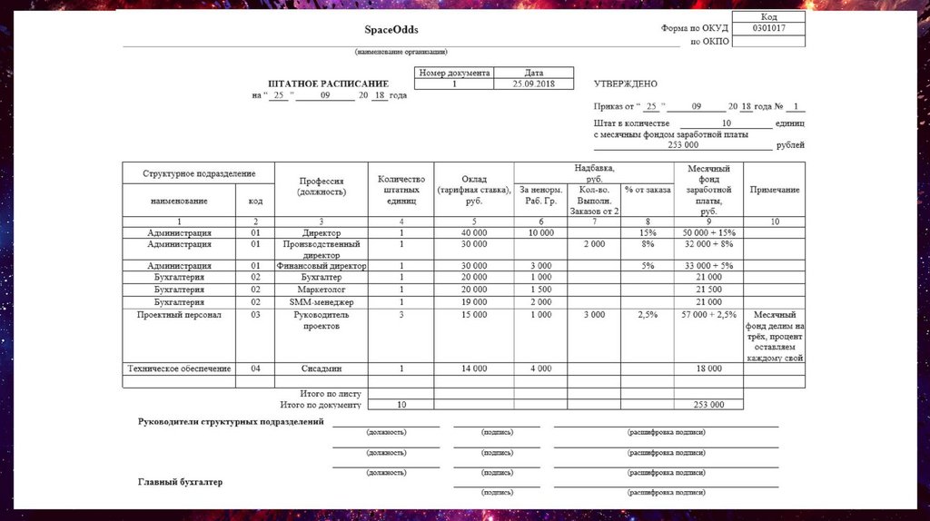 Фонд оплаты труда на вышеперечисленный персонал составляет 235000 руб.Баллы