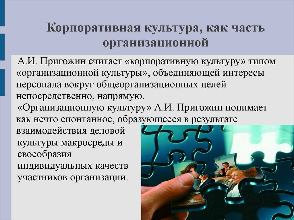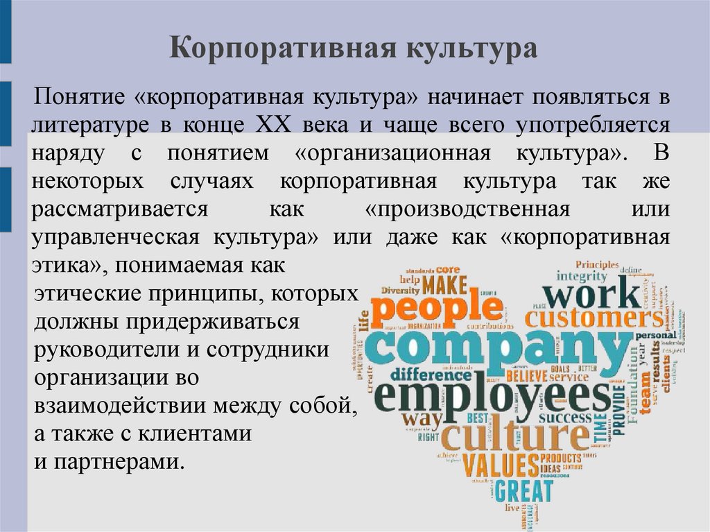 Корпоративная культураПонятие «корпоративная культура» начинает появляться в