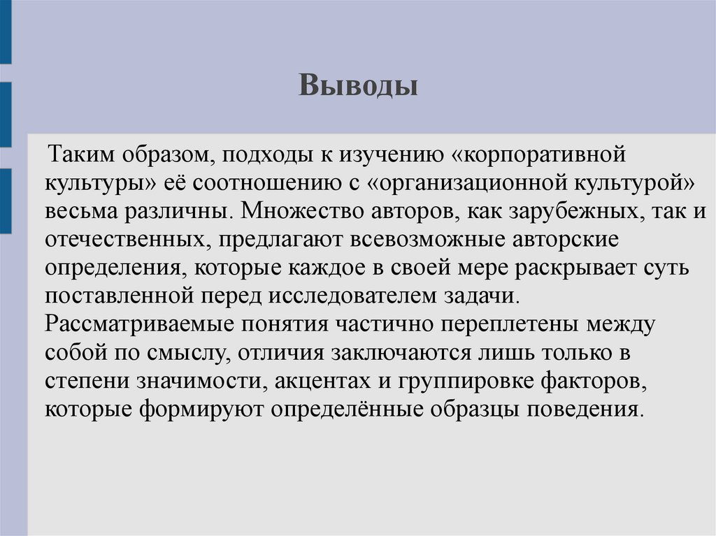 ВыводыТаким образом, подходы к изучению «корпоративной