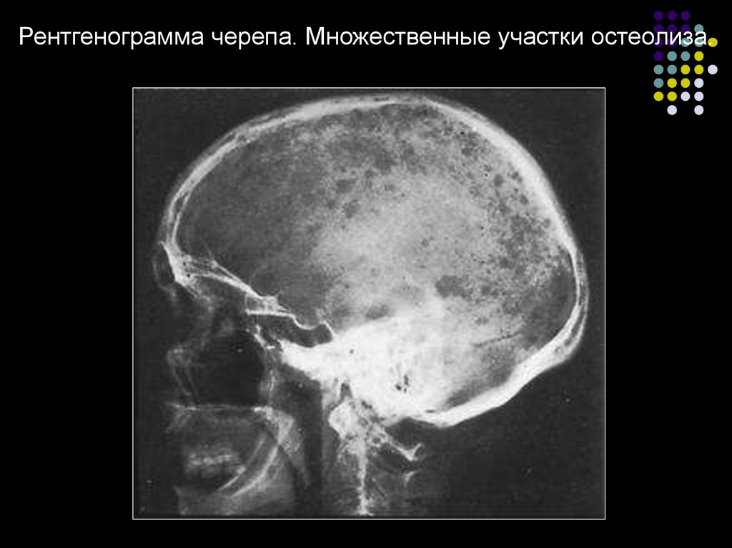 Рентгенограмма черепа. Множественные участки остеолиза.30.
