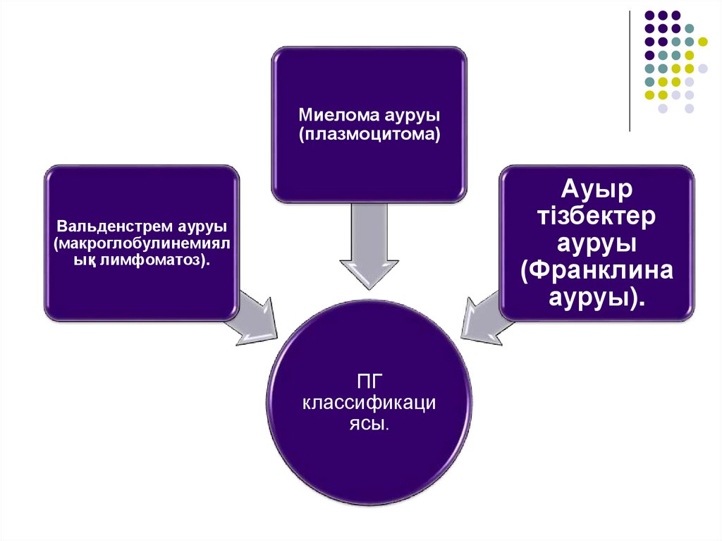 ПГ – Иммуноглобулиндер секрециясына дейін ажыраған Влимфоциттердің ісігі.ПГ- ісік жасушалары иммуноглобулиннің синтезі мен