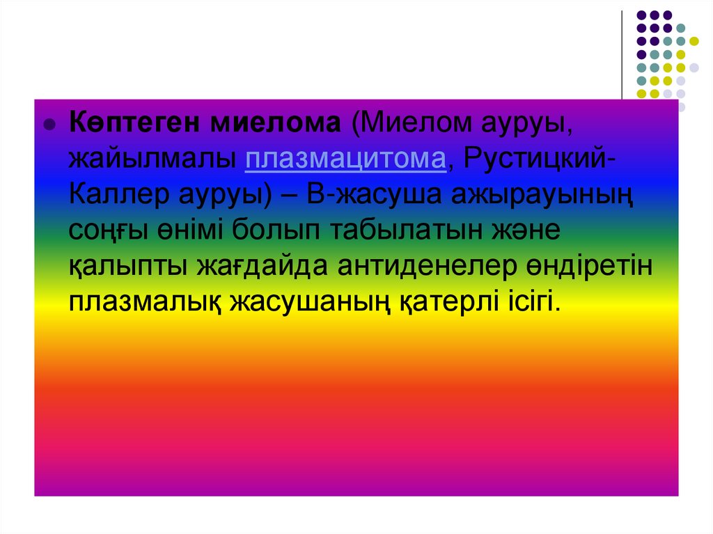Көптеген миелома (Миелом ауруы,жайылмалы плазмацитома, РустицкийКаллер ауруы) – В-жасуша ажырауының