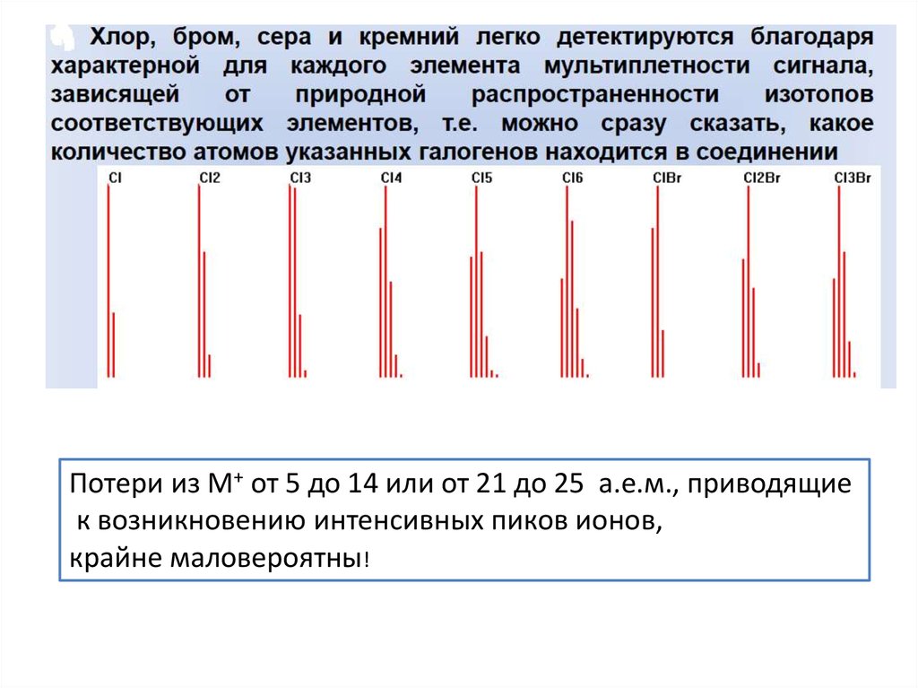 Потери из M+ от 5 до 14 или от 21 до 25 а.е.м., приводящие