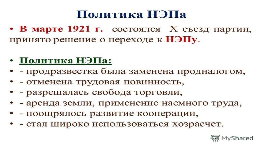 решение о переходе к новой экономической политике или
