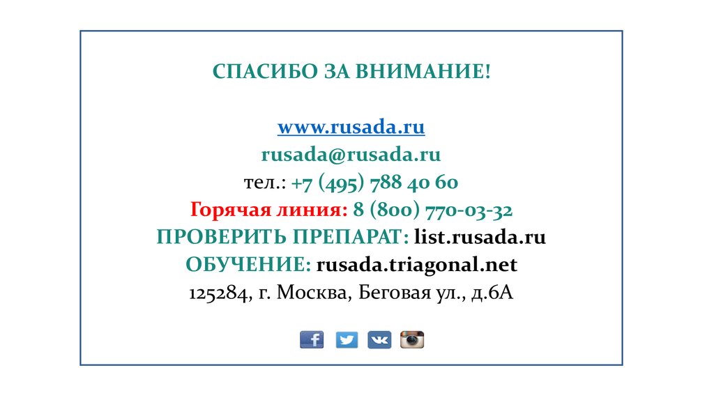 СПАСИБО ЗА ВНИМАНИЕ!www.rusada.ru