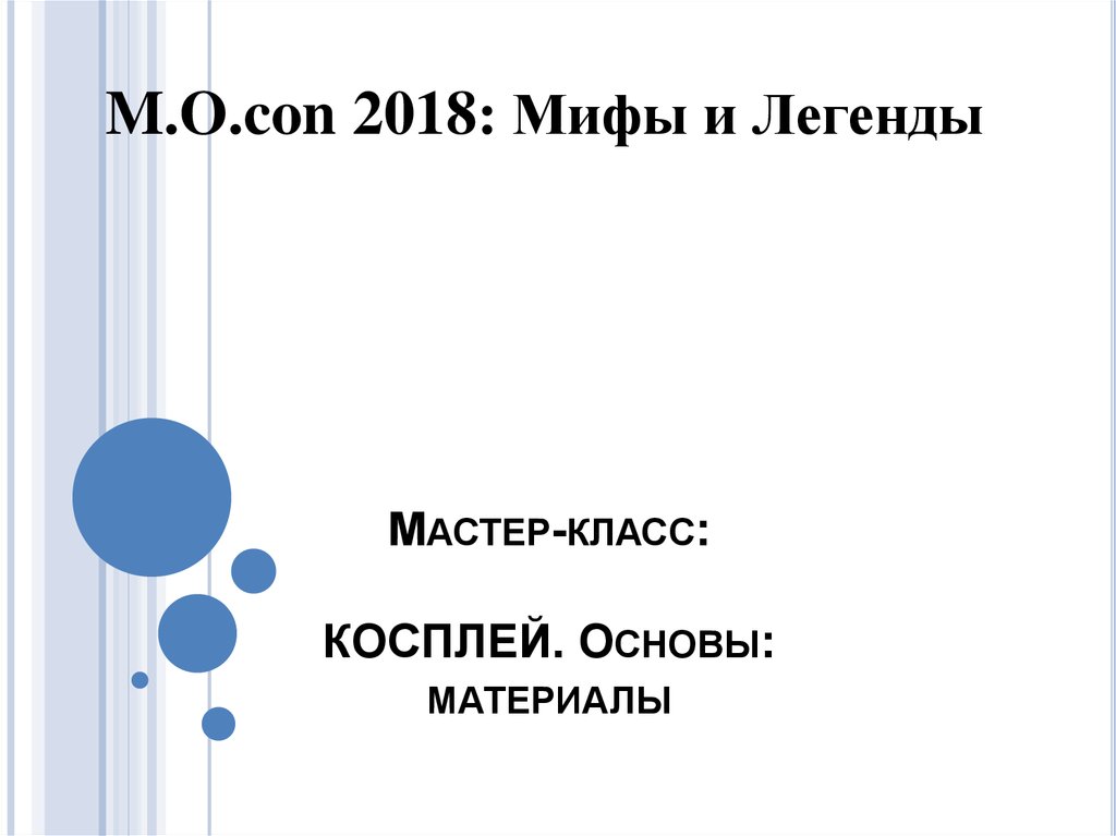 M.O.con 2018: Мифы и ЛегендыМАСТЕР-КЛАСС: