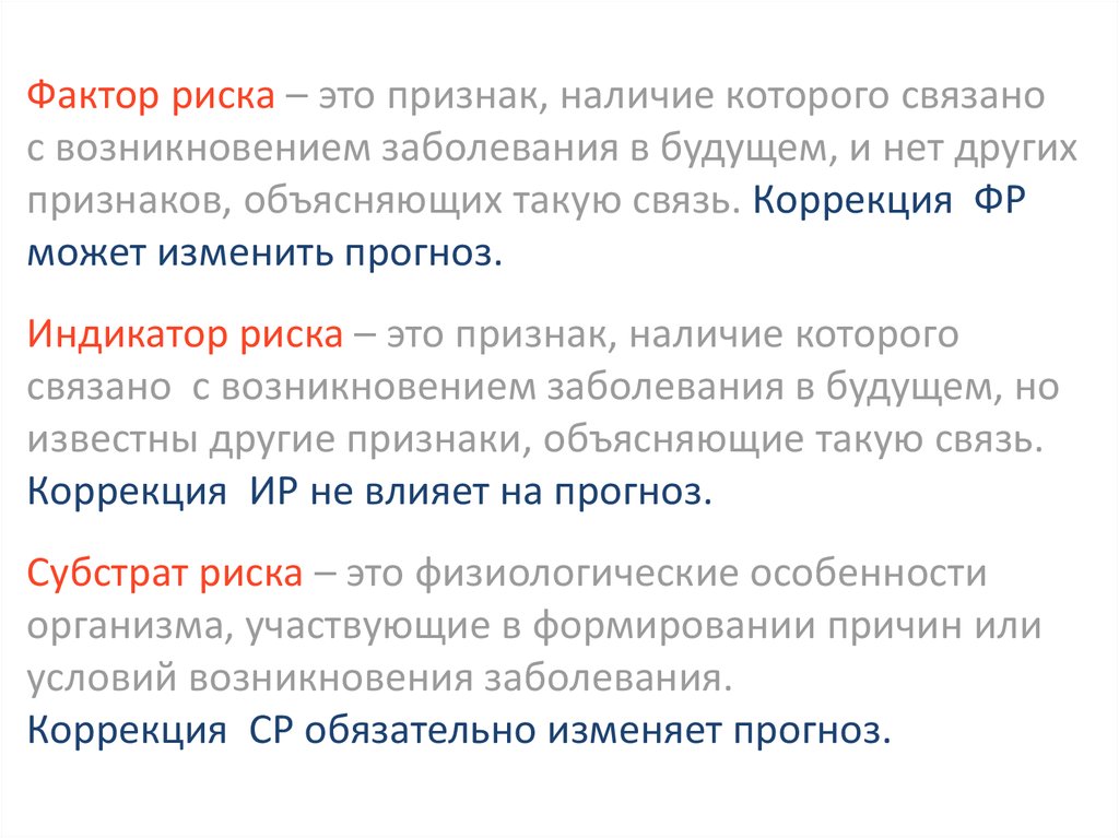 Фактор риска – это признак, наличие которого связанос возникновением заболевания в будущем, и нет других