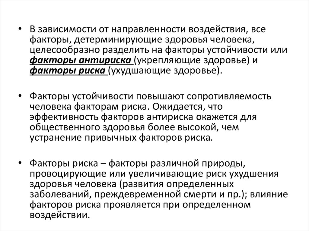 • В зависимости от направленности воздействия, всефакторы, детерминирующие здоровья человека,
