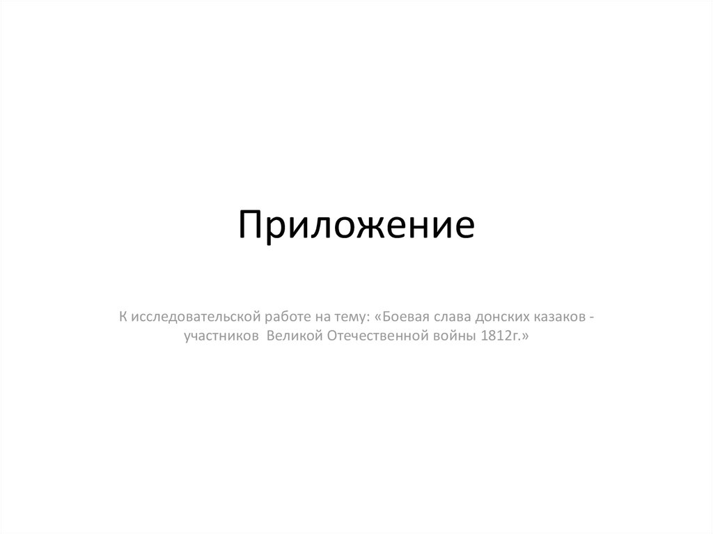 К исследовательской работе на тему: «Боевая слава донских казаков участников Великой Отечественной войны 1812г.»2.