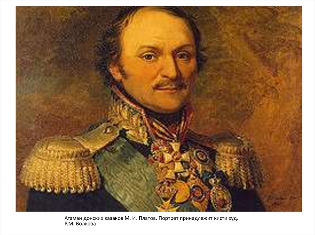 Атаман донских казаков М. И. Платов. Портрет принадлежит кисти худ.Р.М. Волкова