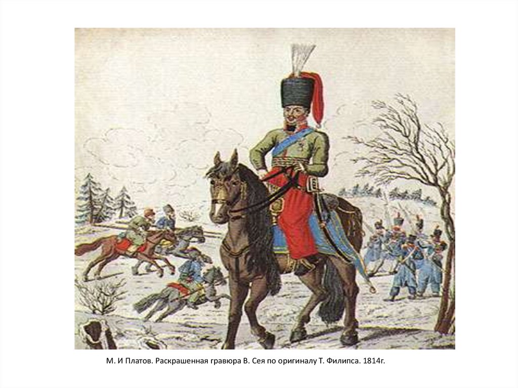 М. И Платов. Раскрашенная гравюра В. Сея по оригиналу Т. Филипса. 1814г.8.