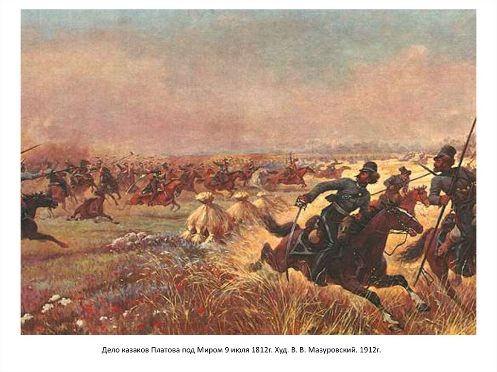 Дело казаков Платова под Миром 9 июля 1812г. Худ. В. В. Мазуровский. 1912г.9.