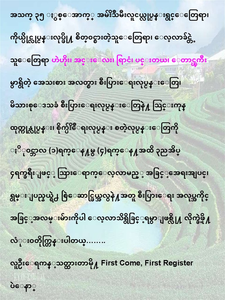 ာ်ိဳးြောမို႔ First Come, First Register