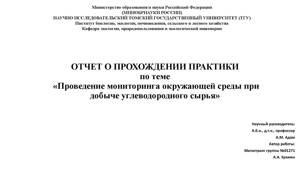 1. ОТЧЕТ О ПРОХОЖДЕНИИ ПРАКТИКИ по теме «Проведение мониторинга окружающей среды при добыче углеводородного сырья»