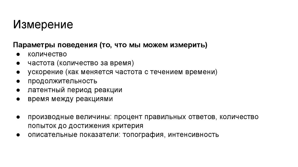 ИзмерениеПараметры поведения (то, что мы можем измерить)