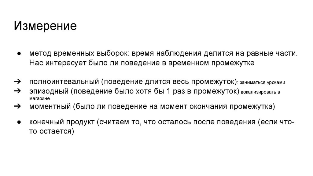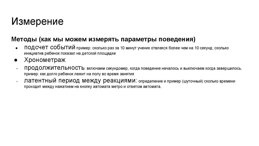 ИзмерениеМетоды (как мы можем измерять параметры поведения)