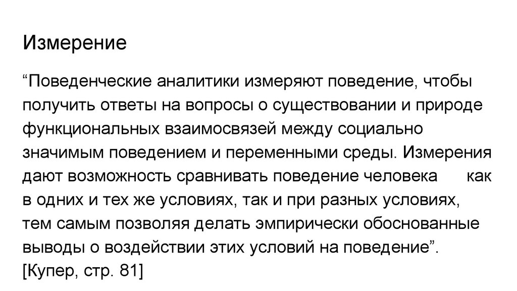 Измерение“Поведенческие аналитики измеряют поведение, чтобы