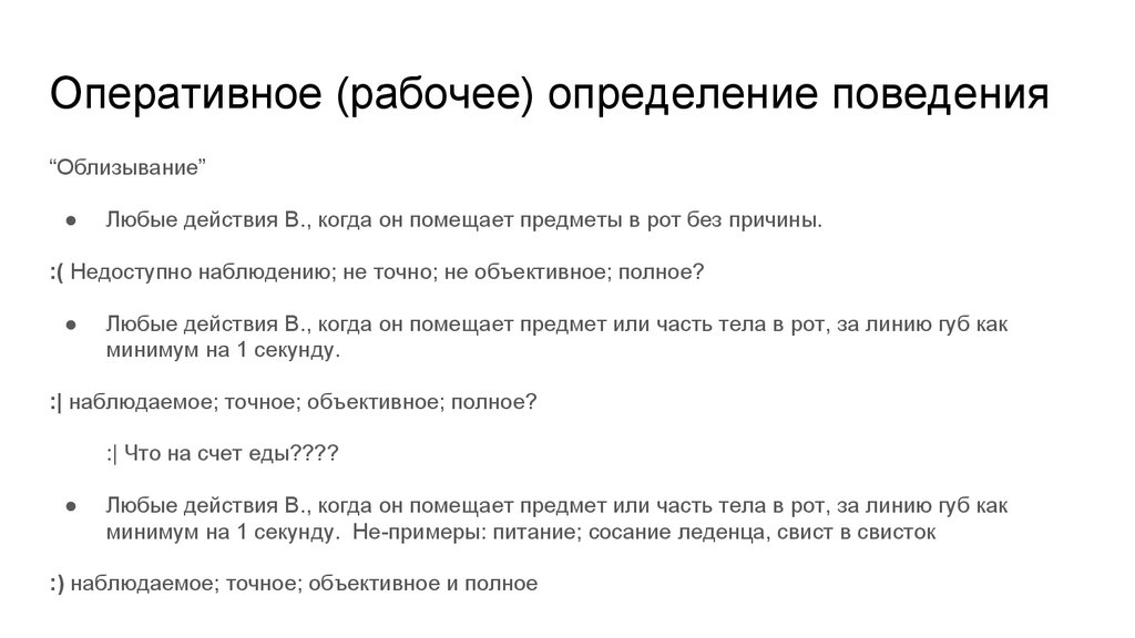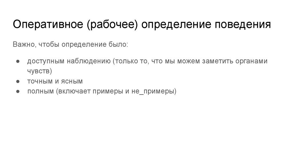 Оперативное (рабочее) определение поведенияВажно, чтобы определение было: