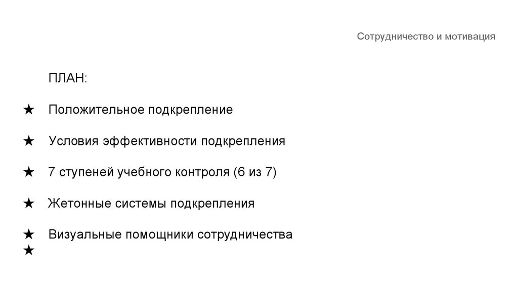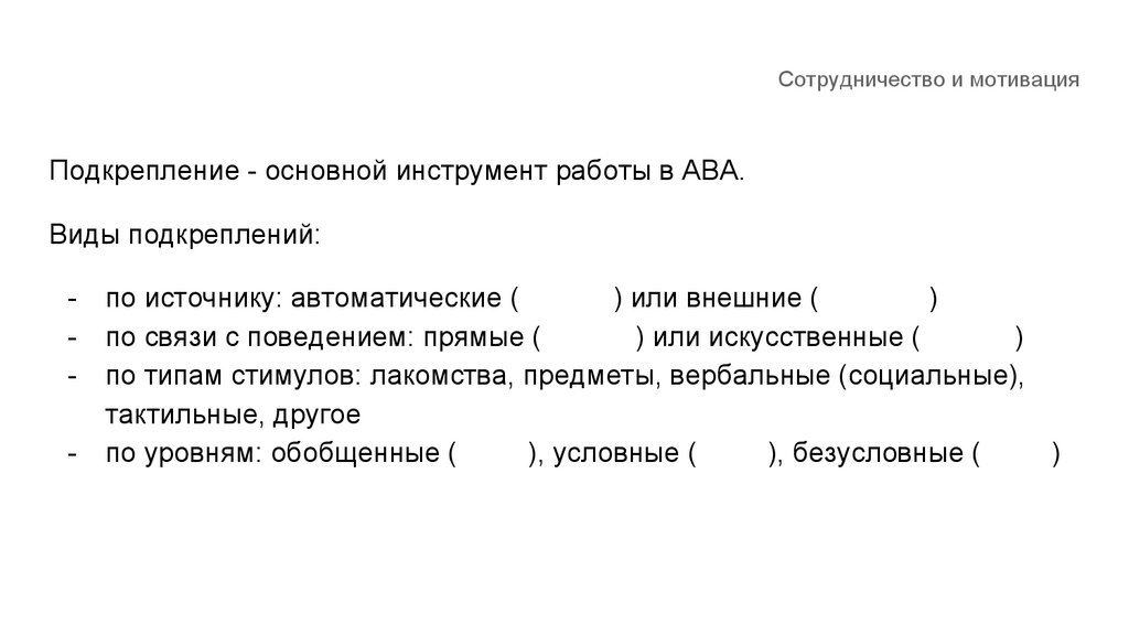 Сотрудничество и мотивацияПодкрепление - основной инструмент работы в АВА.