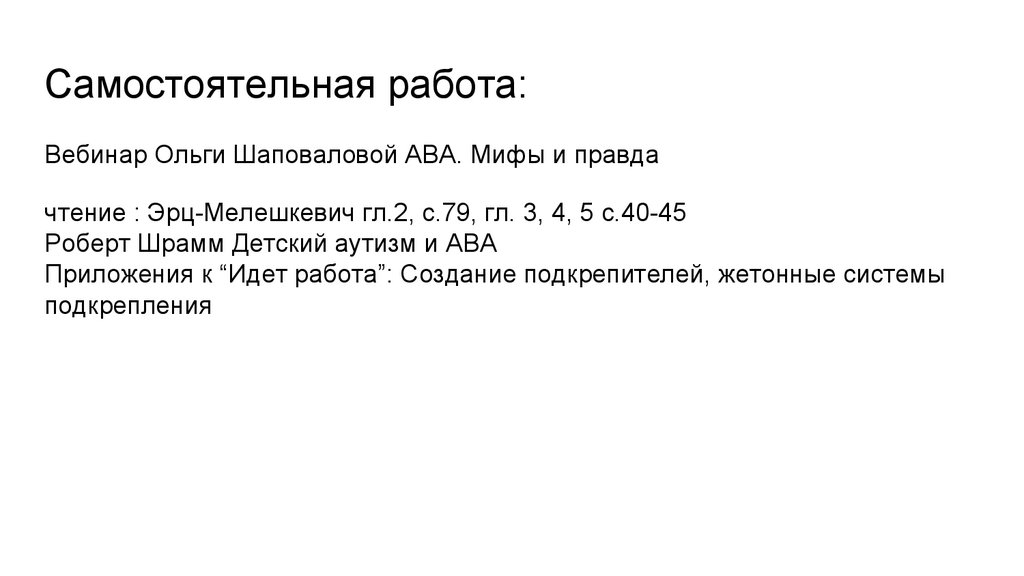 Самостоятельная работа:Вебинар Ольги Шаповаловой АВА. Мифы и правда